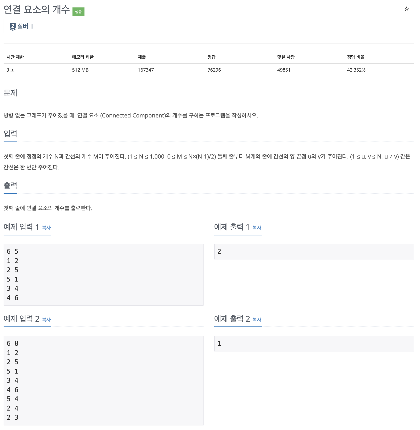 간략하게 말하면 노드들이 몇 개의 그룹(집합)으로 나뉘는지를 계산한다. (서로소 집합 구조 이용)
